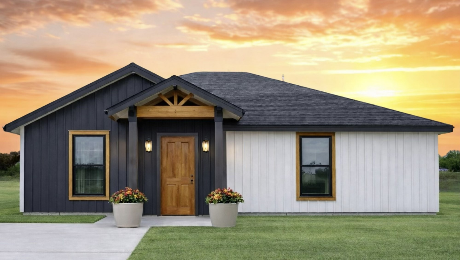 Inspired by the balance of rustic character and contemporary design, Emporio Homes’ Modern Farmhouse Style showcases bold two-tone board-and-batten siding, natural wood details, and strong architectural lines that create standout curb appeal. This style emphasizes contrast, clean structure, and a fresh take on traditional barn design. Whether you're selecting the 3-bedroom or 4-bedroom floorplan, you'll find the same signature quality Emporio is known for - durable materials, stylish finishes, and thoughtful layouts built for both comfort and style. It’s modern living with a confident barn-inspired edge.